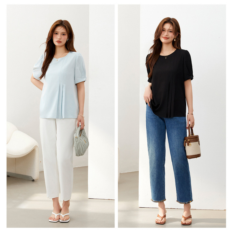 | nameOriginal | Slim Show plus size Women's Wear Design Sense Pleated Niche Elegant Commuter Elegant Shirt Chubby mm2024 Summer New Style |