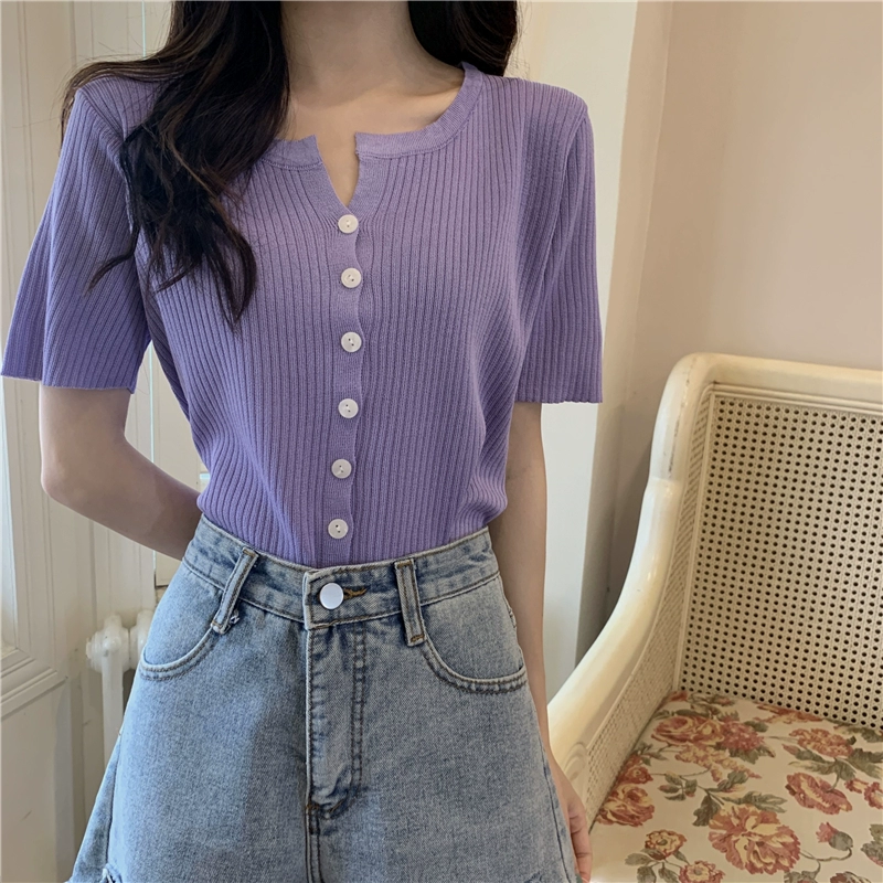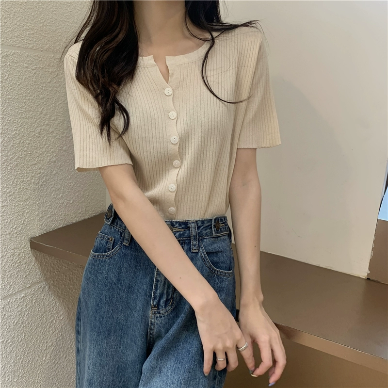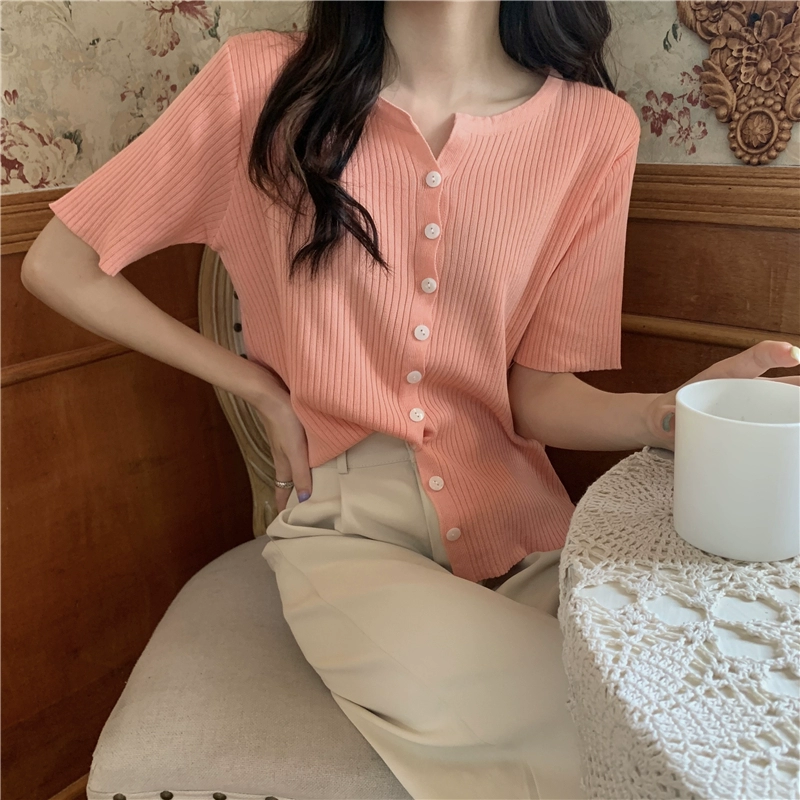 Slim V-neck short versatile knitted cardigan for petites