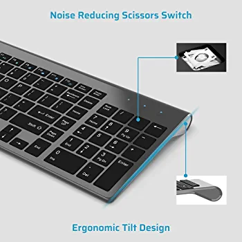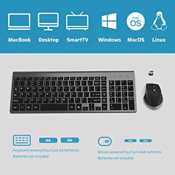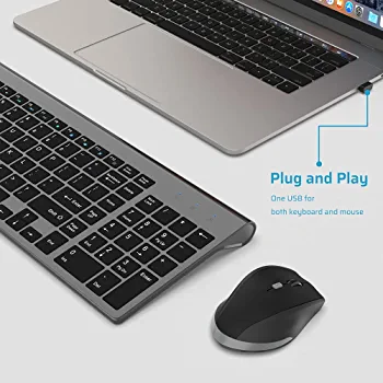 This keyboard and mouse combo share one USB dongle, eliminating the need for multiple wires and saving valuable desk space. With 2.4GHz technology, it is compatible with a wide range of devices including computers, laptops, and smart TVs.