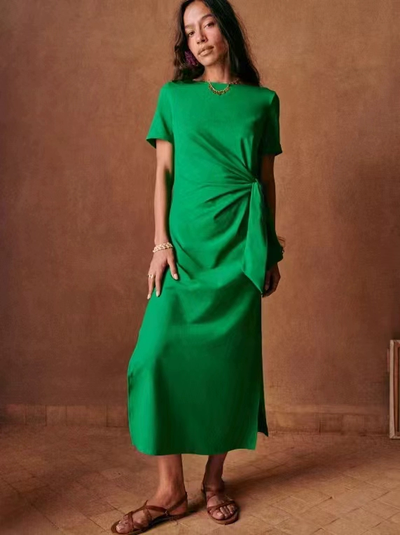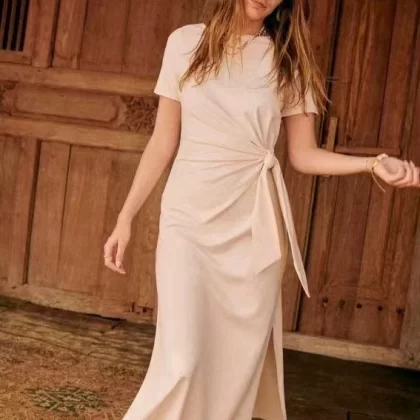 | nameOriginal | Slimming short-sleeved stretch dress with side slits |
