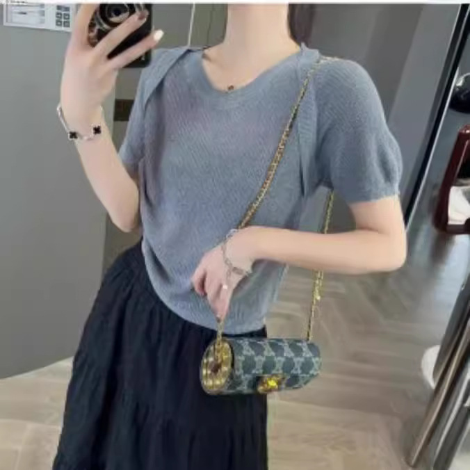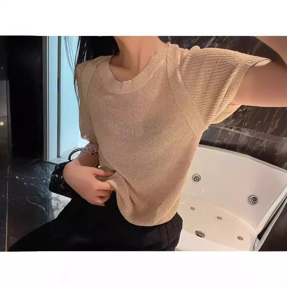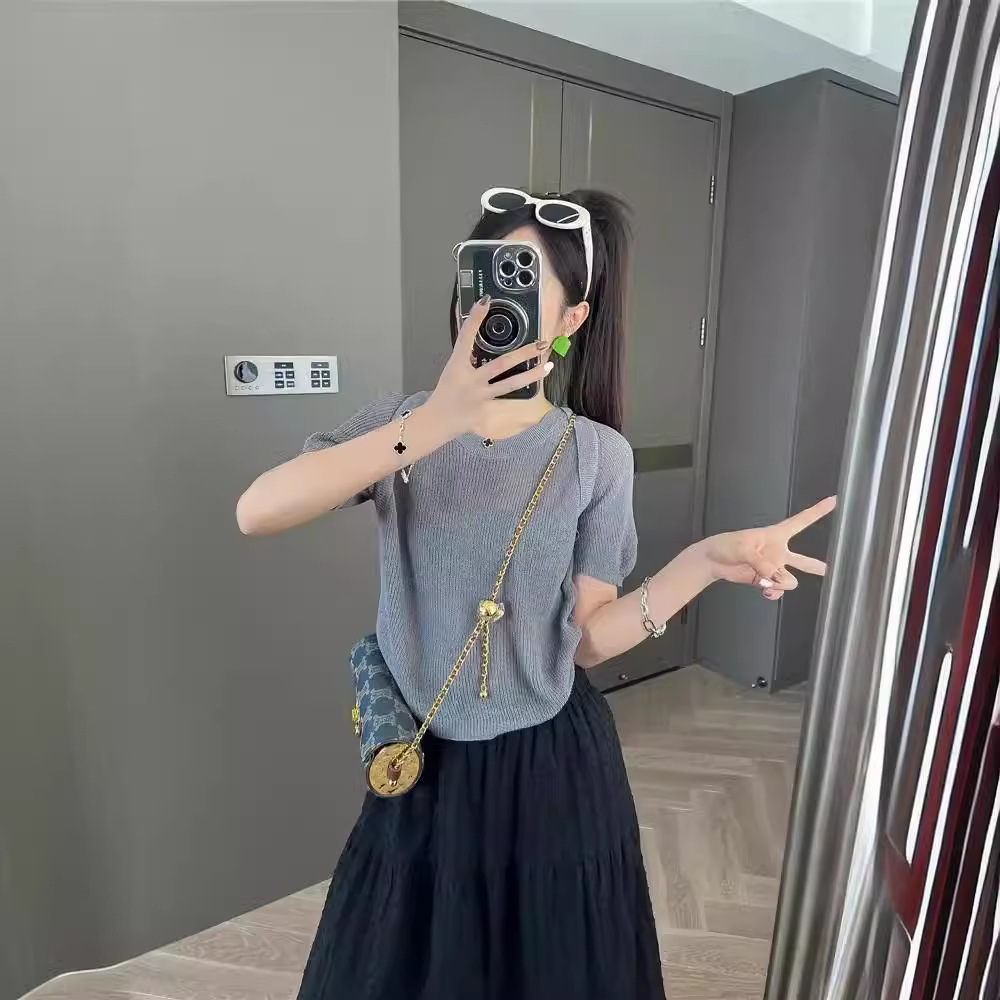 | nameOriginal | Slimming Short-sleeved Thin Sweater T-shirt Women's Summer 2024 New Slim-fit Design Sense Top Trendy |