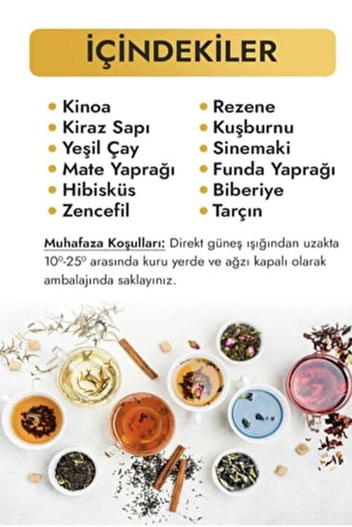 3 cans of strainer bags It is a herbal blended tea with a predominance of quinoa seed within the scope of food safety in spring herbal plants with special formulation from carefully collected first-quality plants. Plants used before the production of spring detox quinoa form herbal tea containing no additives were sterilized by dry sterilization technique. Product use: 1 sachet of tea is added to 1 cup of hot water and is ready for 5 minutes after brewing.