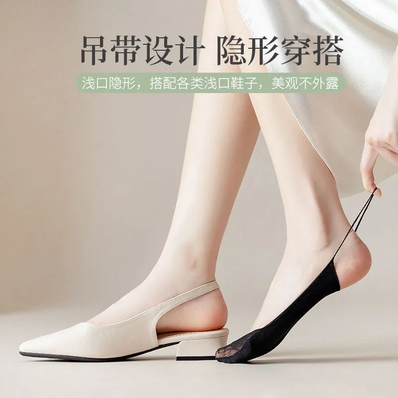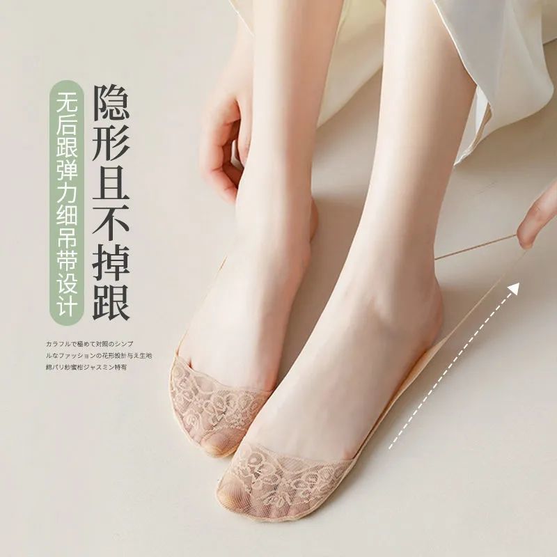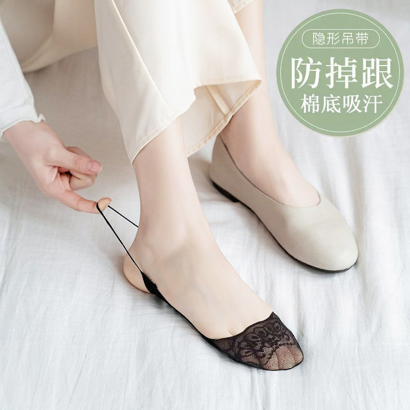 Sling Women's Summer Thin Invisible Super Shallow High Heels Socks Lace Anti-slip Don't Drop-heel Cotton Bottom Boat Socks