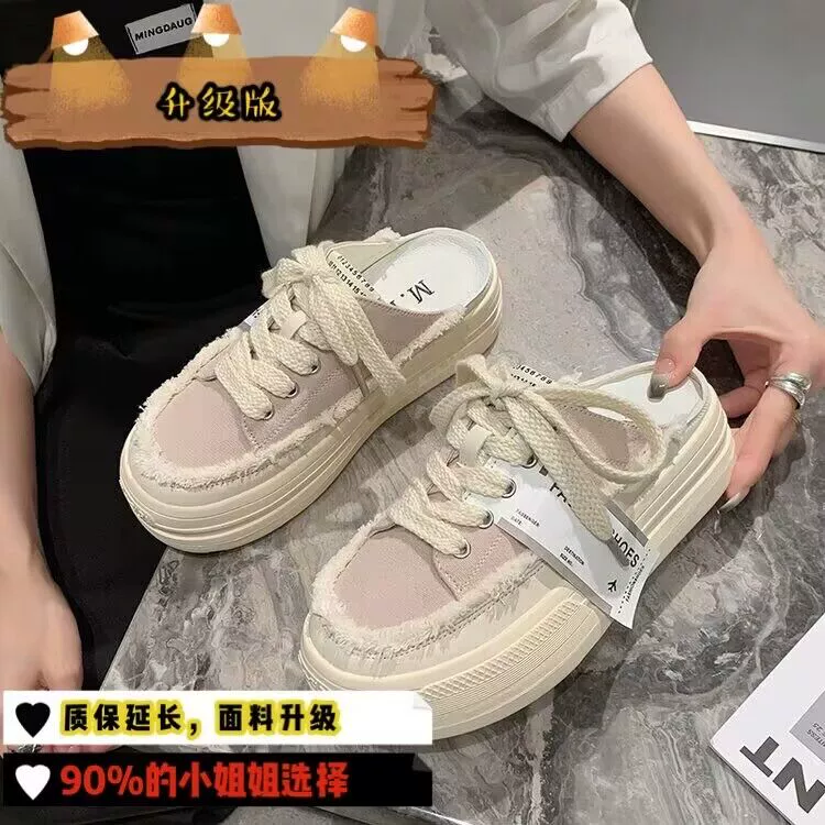 | nameOriginal | Slip-on biscuit Internet celebrity lazy sneakers casual shoes thick sole heightening beggar shoes half-slip canvas shoes women's summer outer wear |