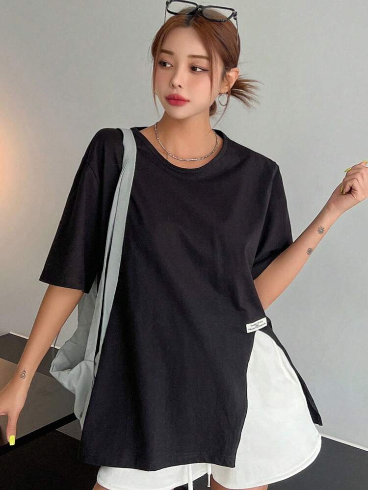 | URL | https://m.shein.com/DAZY-Letter-Patched-Detail-Slit-Hem-Tee-p-15492248-cat-1738.html  |