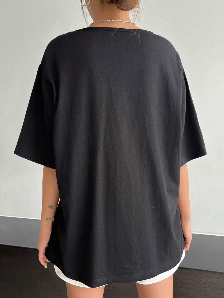 | nameOriginal | DAZY Letter Patched Detail Slit Hem Tee  |