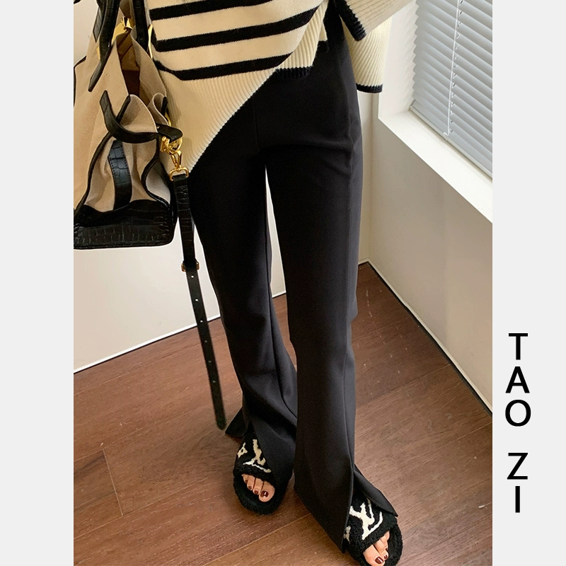 | nameOriginal | Slit suit high elastic autumn and winter plus velvet 2023 new high waist drape pants slim casual micro-flared pants for women |