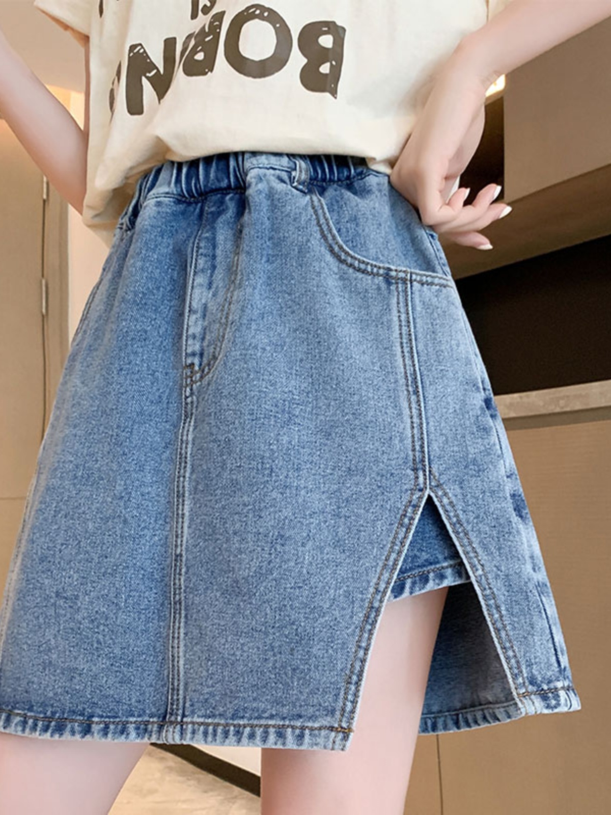 | nameOriginal | Slit summer large size fat mm elastic waist denim culottes |