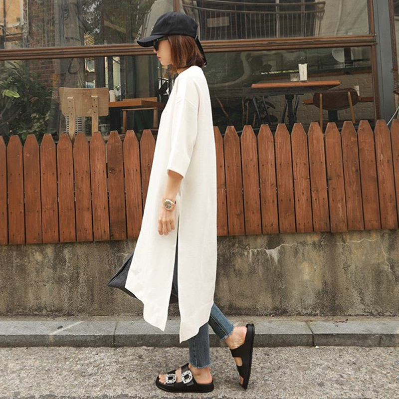 Slit women’s new Korean style three-quarter sleeve BF style T-shirt