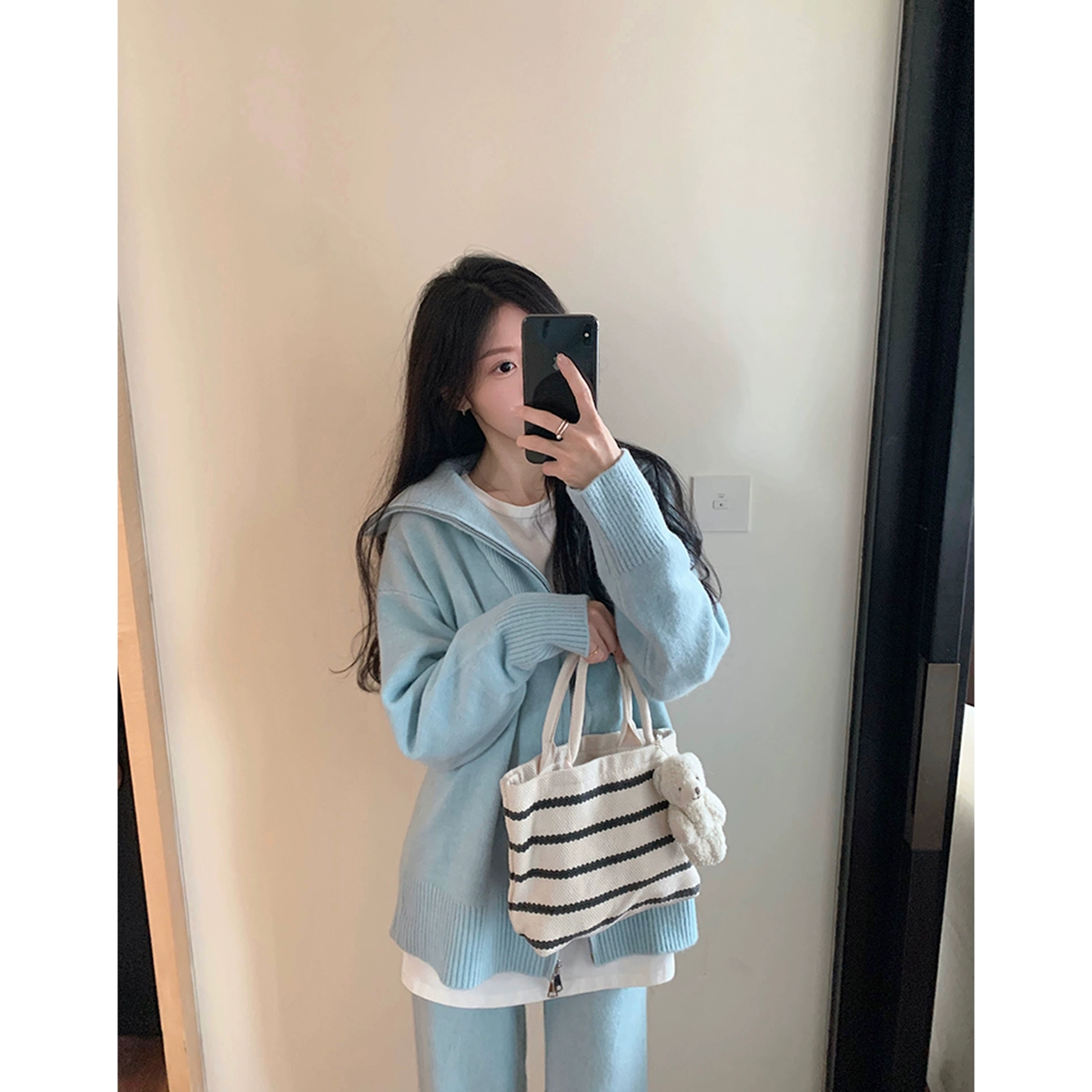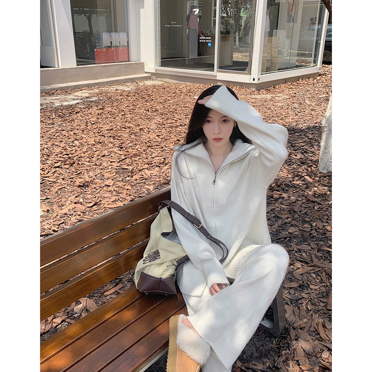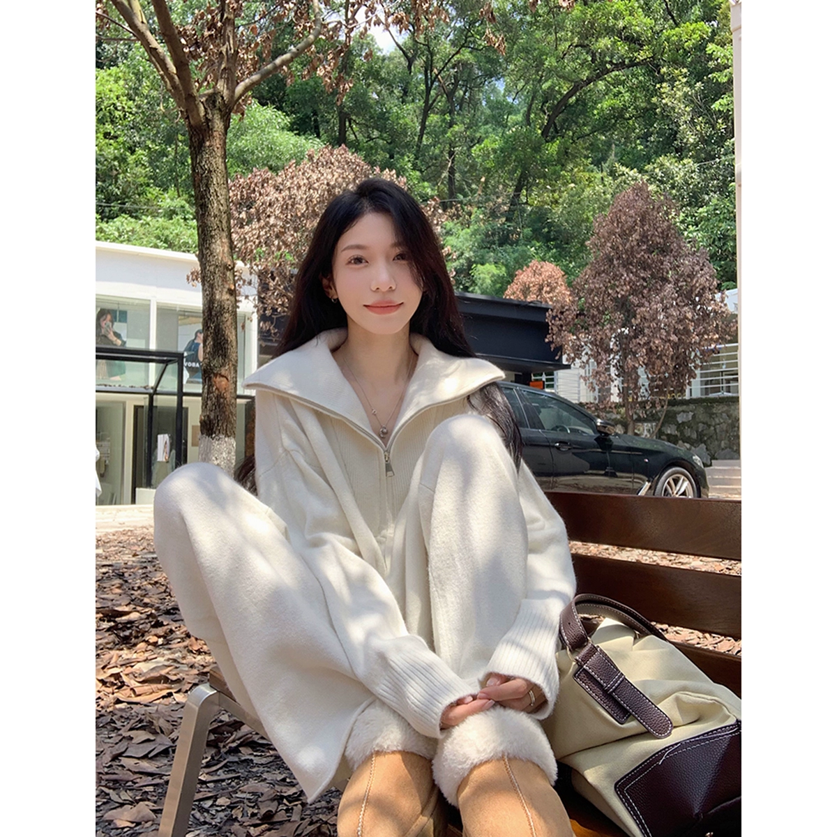 | nameOriginal | Slouchy zippered lapel knitted wide-leg long-sleeved sweater |