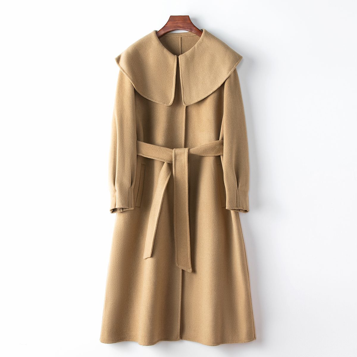 | nameOriginal | Small amount of clothing 2024 spring new 70% wool double-sided woolen coat woolen doll collar casual lace-up coat |