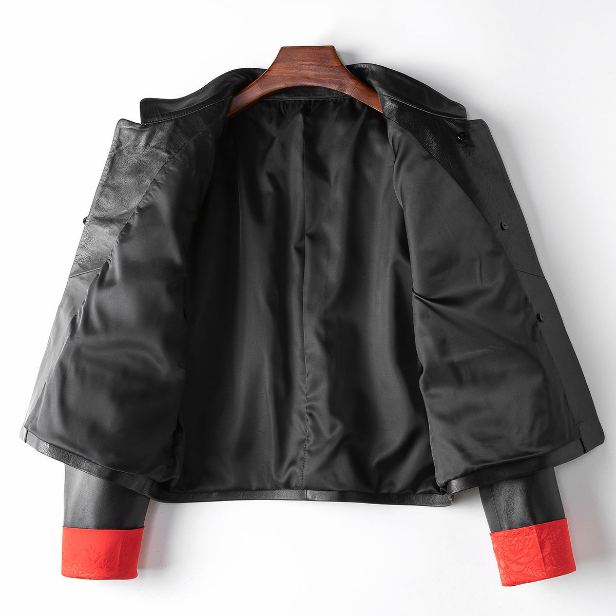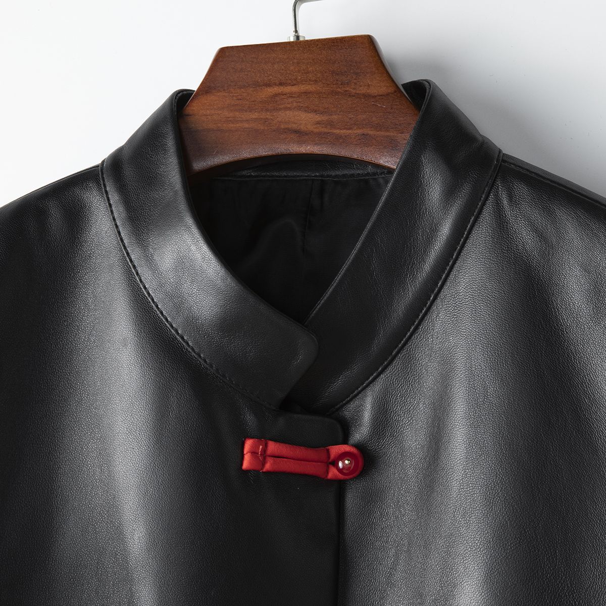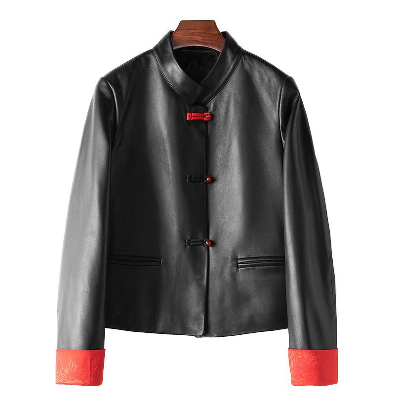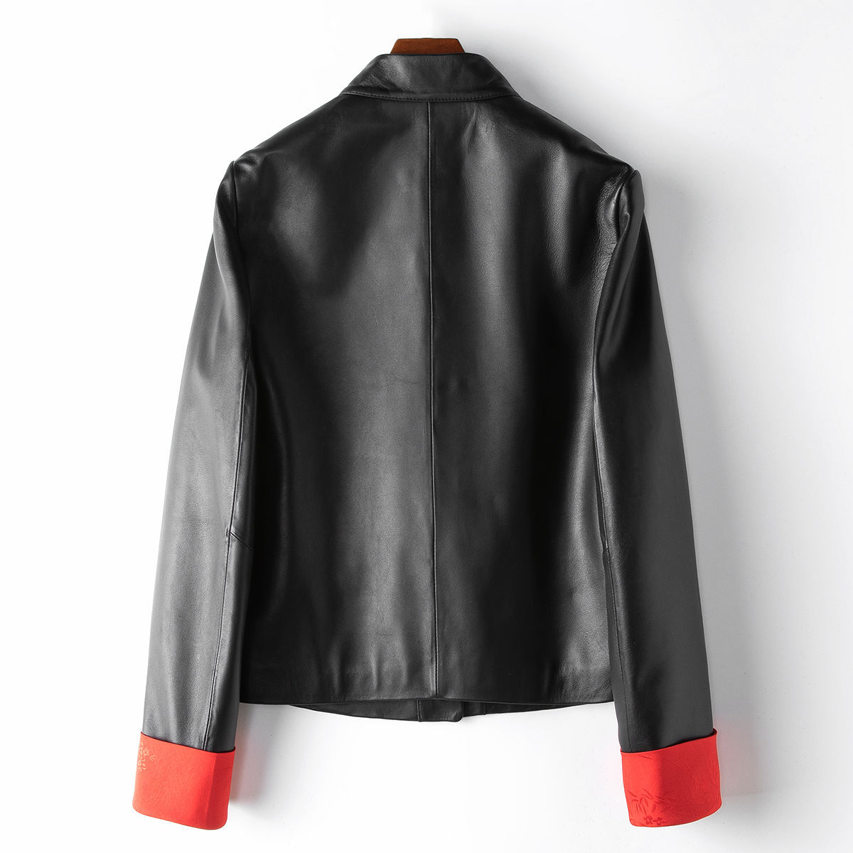| nameOriginal | Small amount of clothing 2024 spring new sheep skin stitching mulberry silk new Chinese stand collar leather coat women |