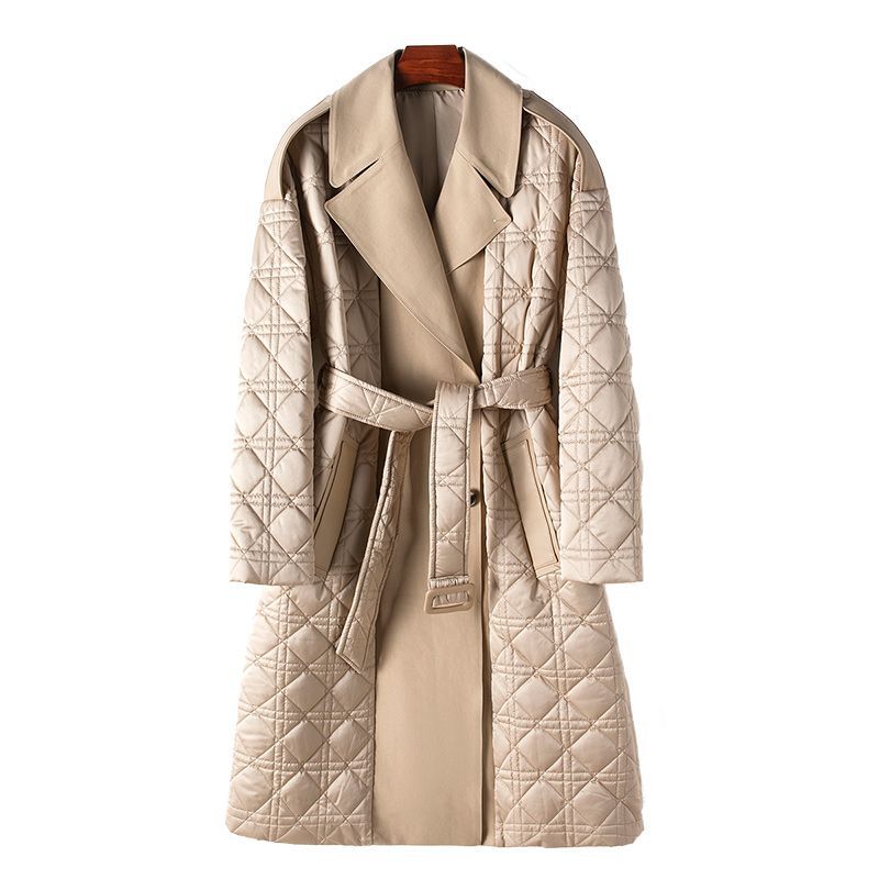 | nameOriginal | Small amount of clothing Haining 2024 Spring and Autumn New stitching sheepskin cotton-padded jacket women's fashionable waist-tight temperament rhombus plaid cotton-padded jacket |