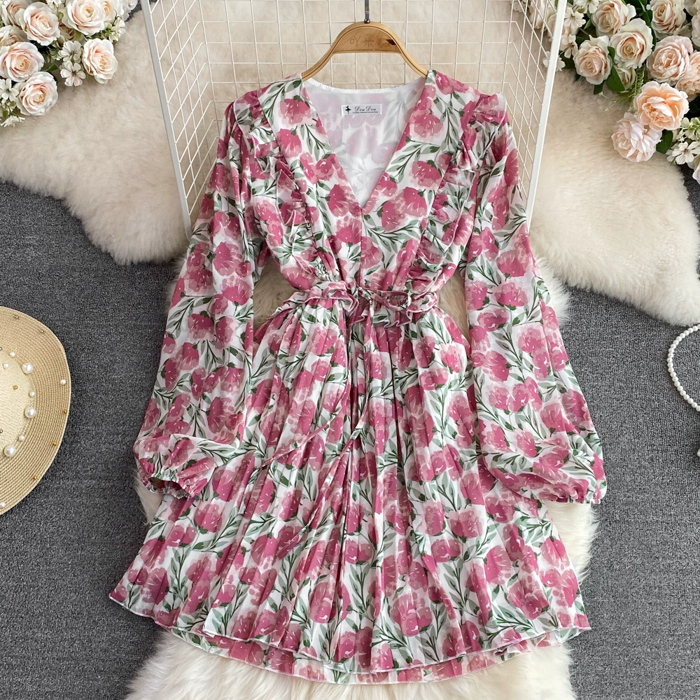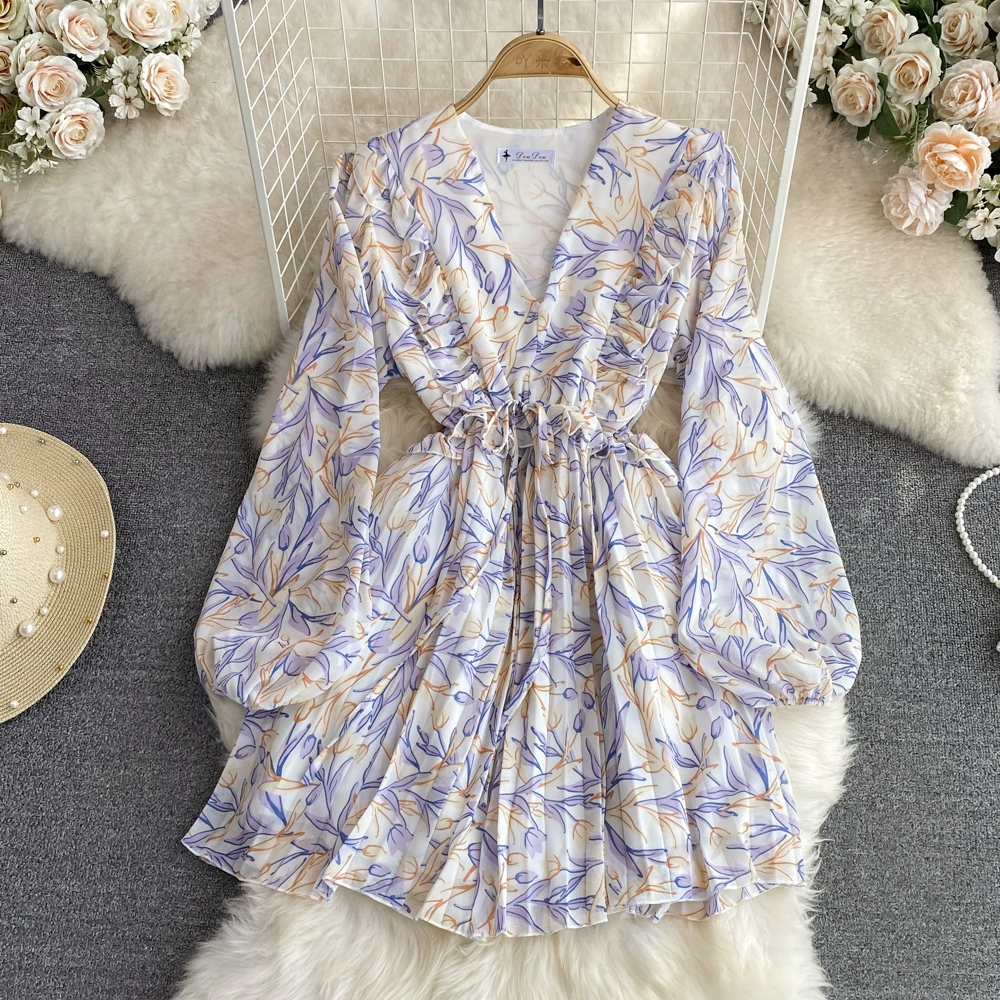 | nameOriginal | Small and fresh Korean style V-neck long-sleeved A-line pleated dress |