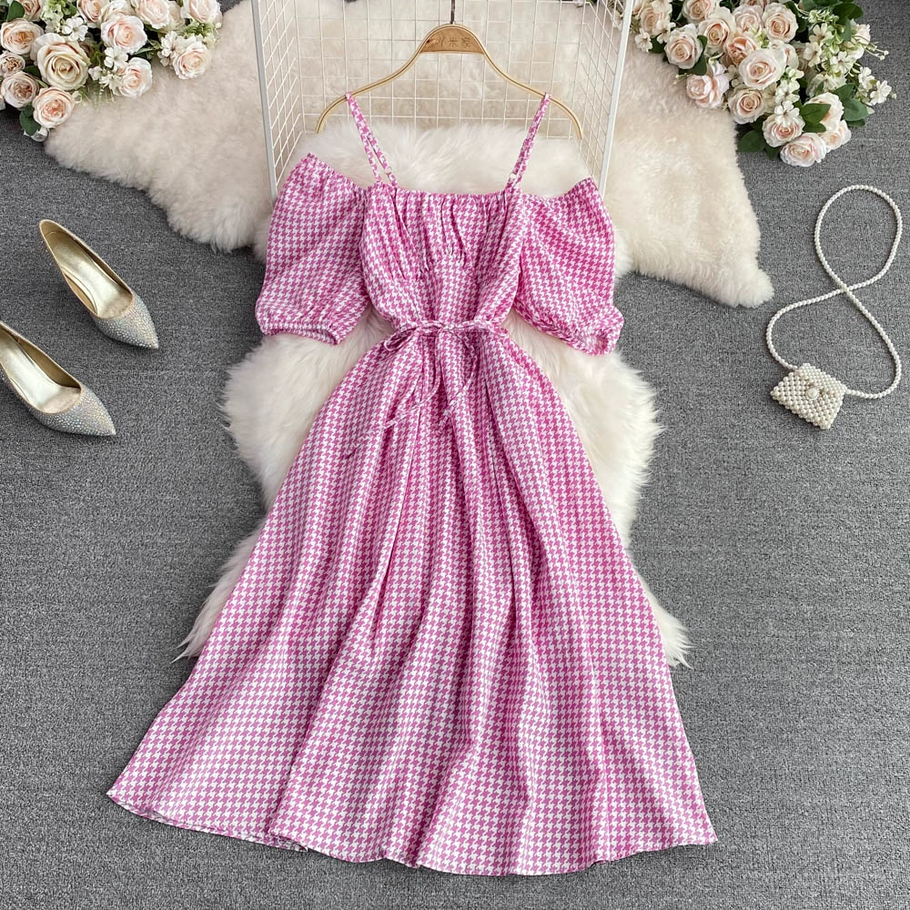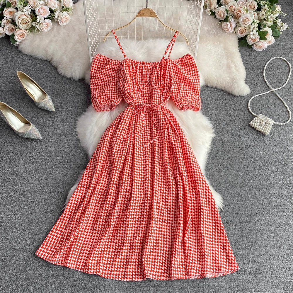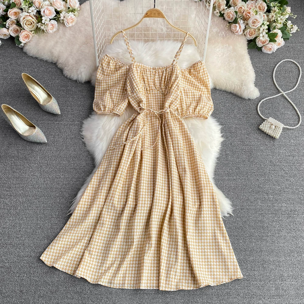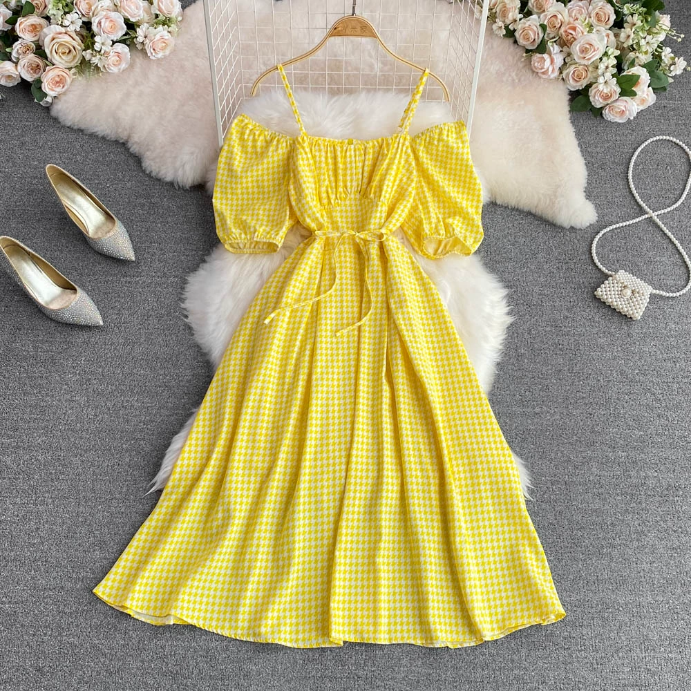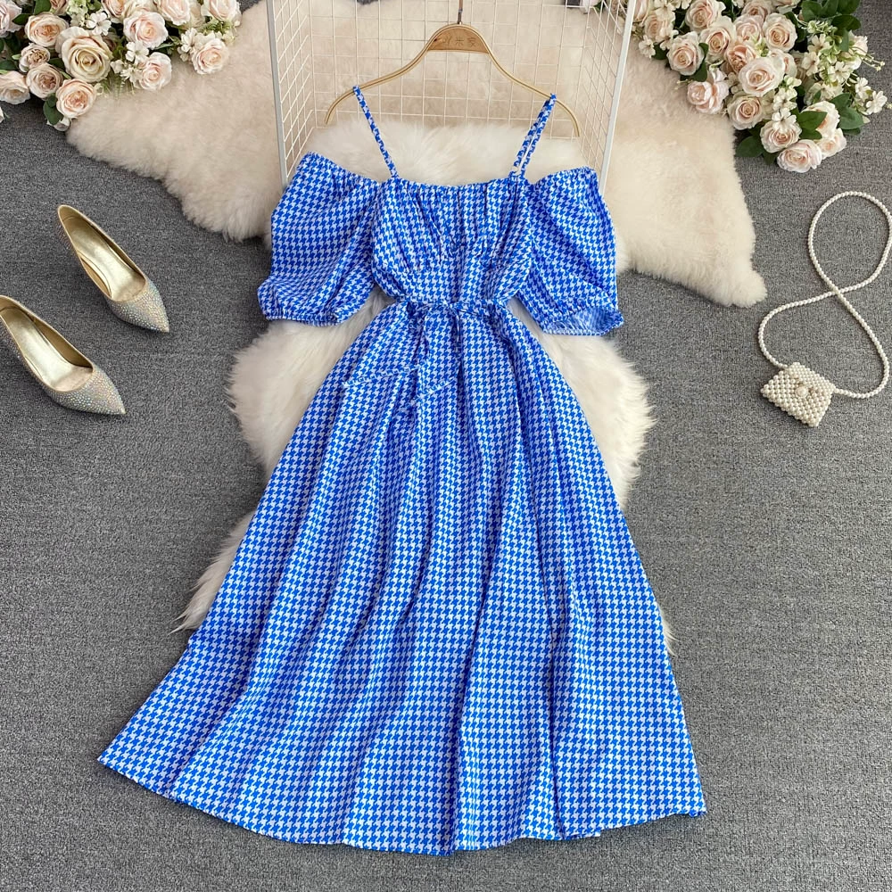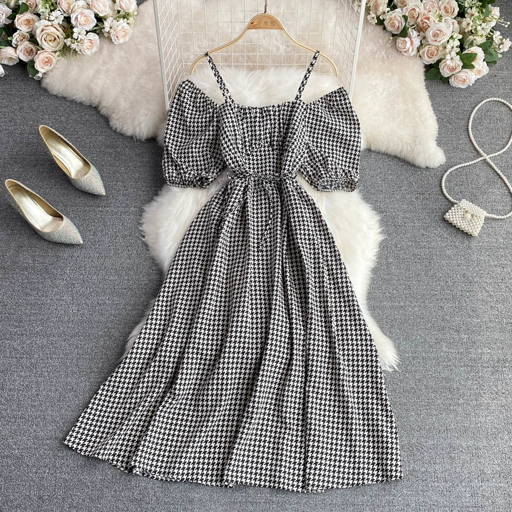 | nameOriginal | Small and fresh summer square neck puff sleeves and wide suspender skirt |
