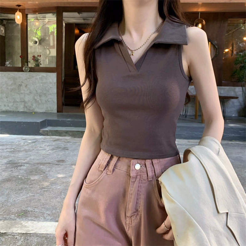 | nameOriginal | Small and versatile slim-fitting sleeveless inner bottoming shirt vest for women summer Korean style polo collar design top |