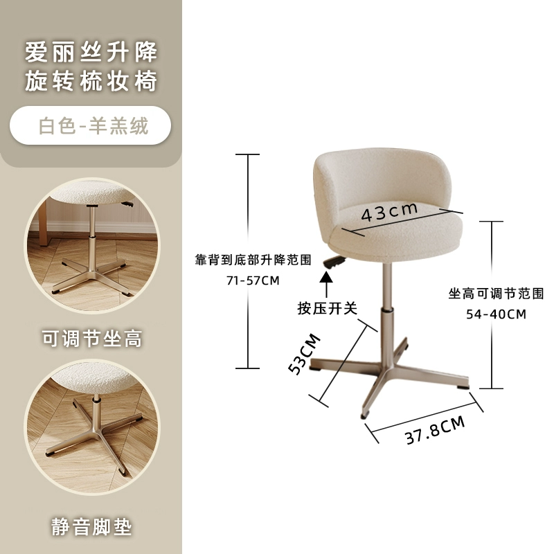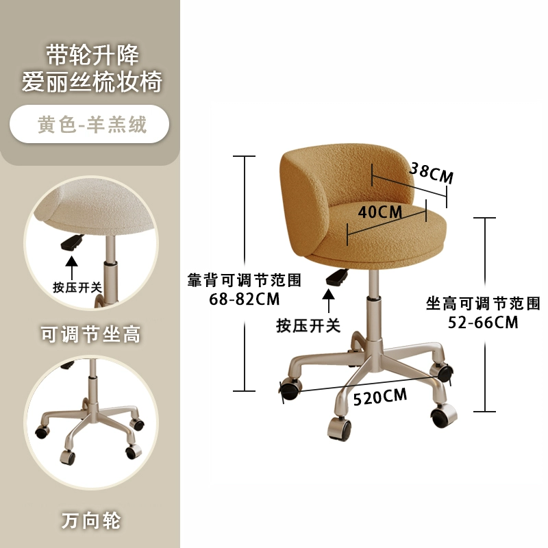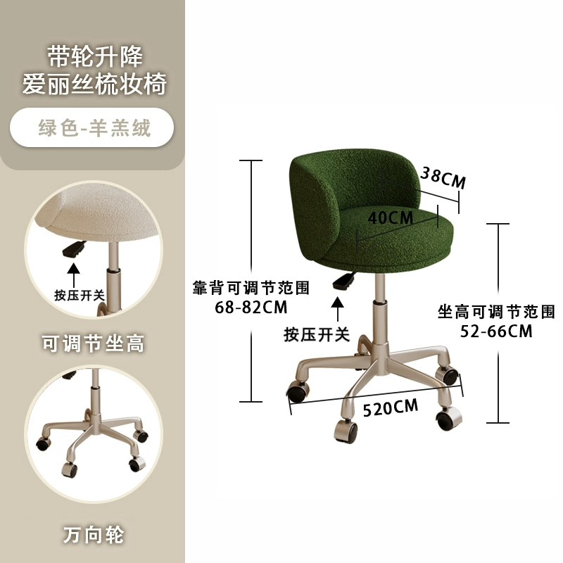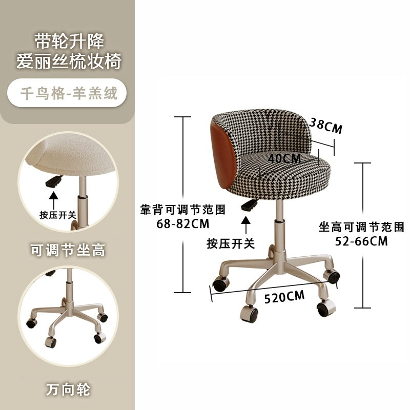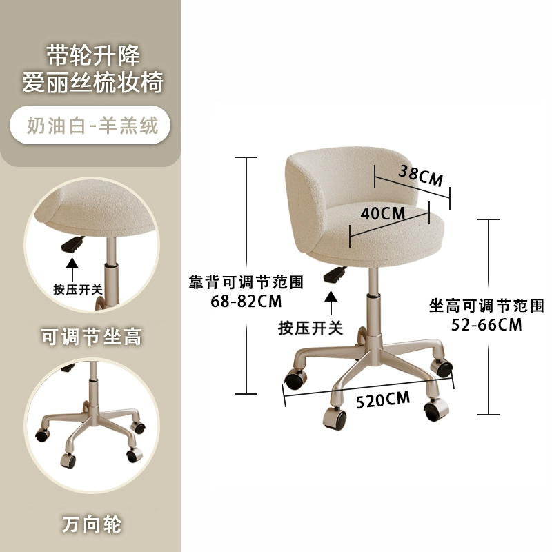 Small apartment high-end makeup stool with wheels, rotatable and liftable