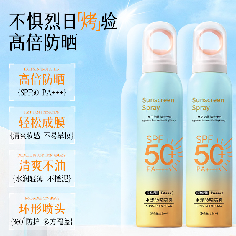 | nameOriginal | Small aperture sunscreen spray SPF50 high-fold sunscreen 150ml refreshing non-sticky UV manufacturers wholesale |
