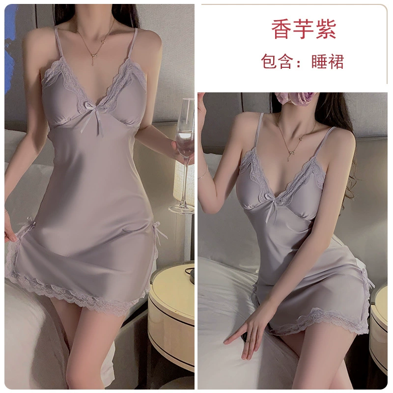 | nameOriginal | Small-breasted ice silk summer French high-end white nightgown |