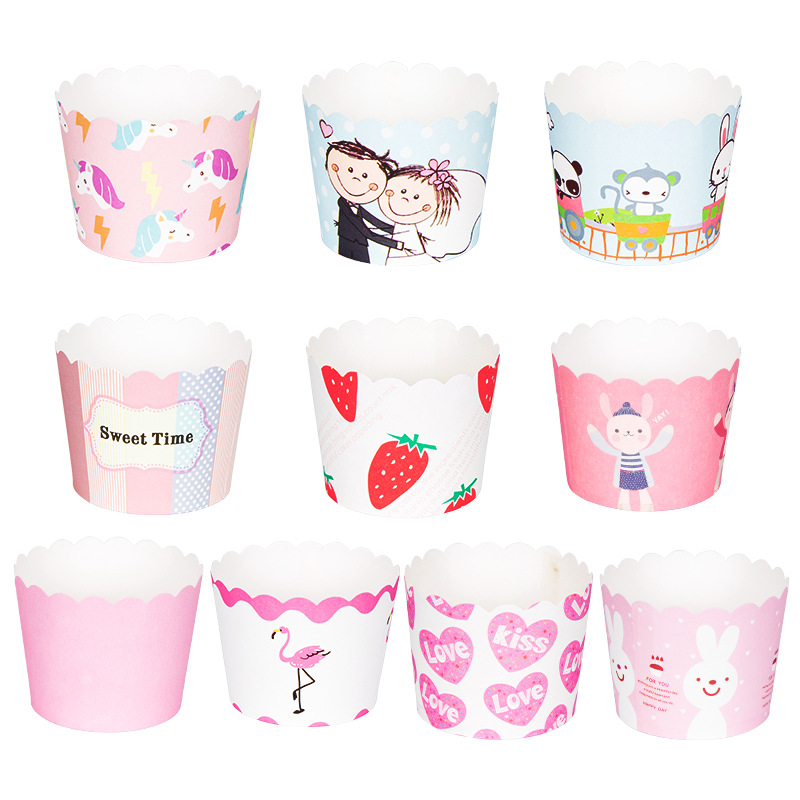 | nameOriginal | Small Cake Cuppers Mafen Cup High Temperature Baking Chiffon Small Cake Cup Disposable Cute Pattern Paper Cup 50 |