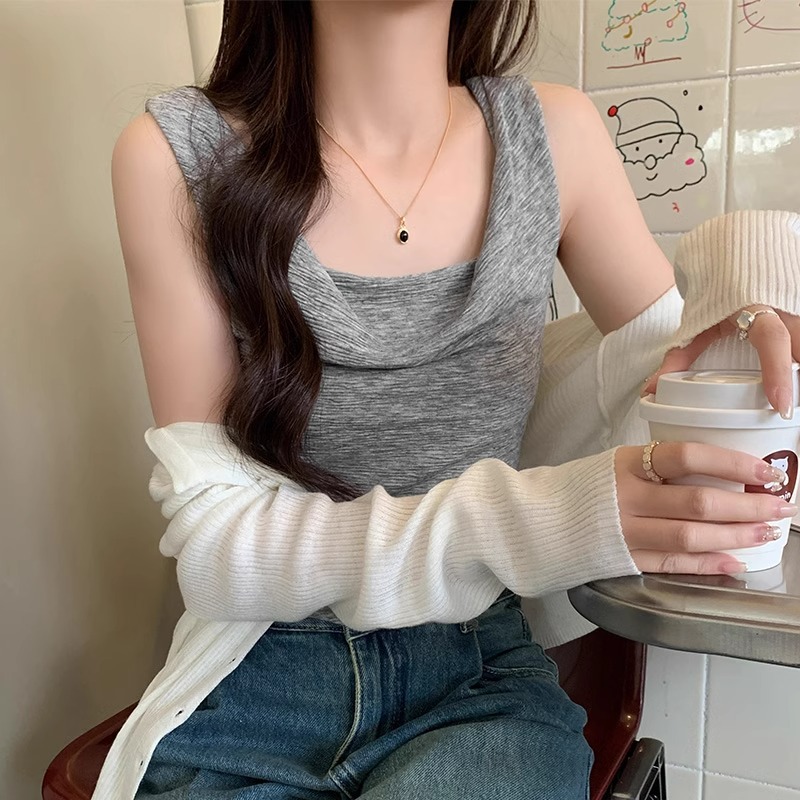 | nameOriginal | Small Camisole Women's Outer Wearing Design Sense Inner Wearing Pleated Wing Collar for Hot Girls Slim-fit Irregular Sleeveless Top |