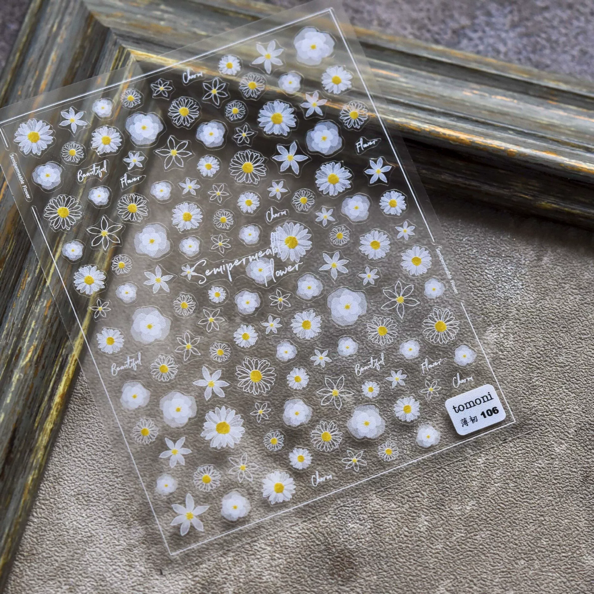 | nameOriginal | Small clear three-dimensional new thin tough decals small daisy stickers ultra-thin English letters white manicure stickers nail accessories |