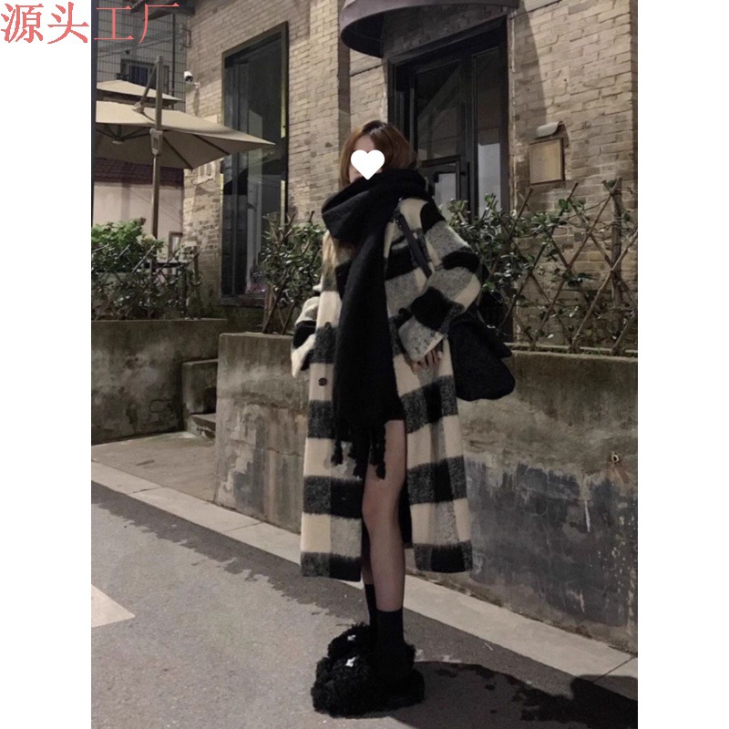 | nameOriginal | Small coat for women 2024 autumn and winter New Black Korean style mid-length plaid woolen coat for women |