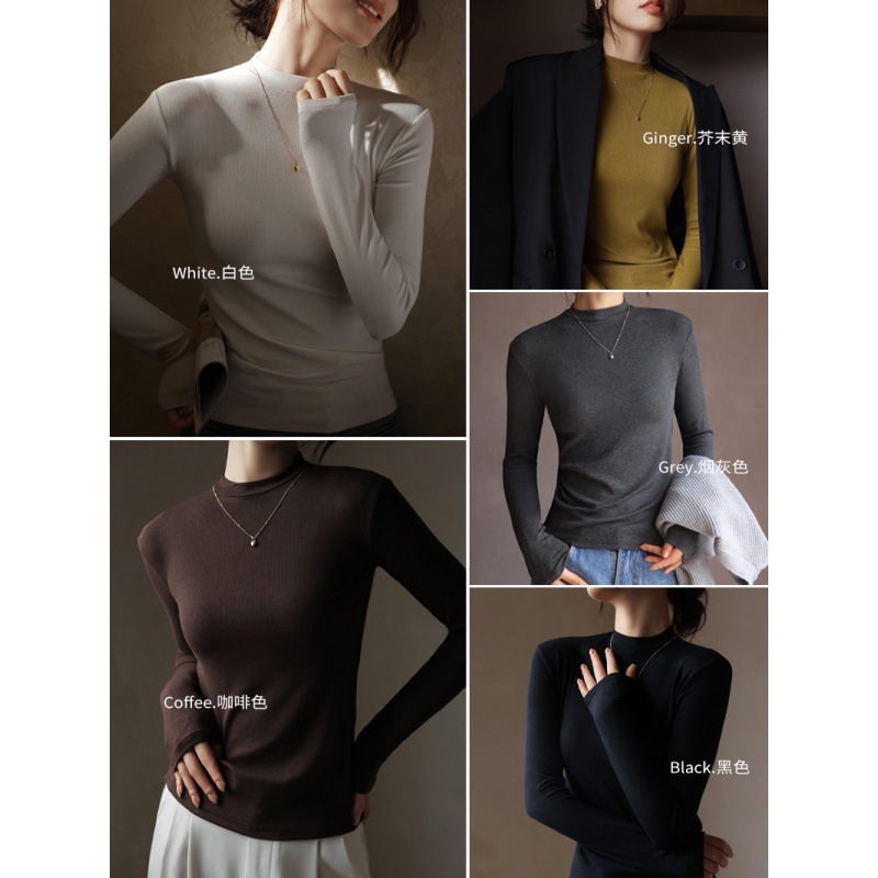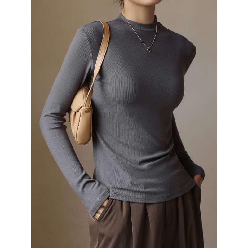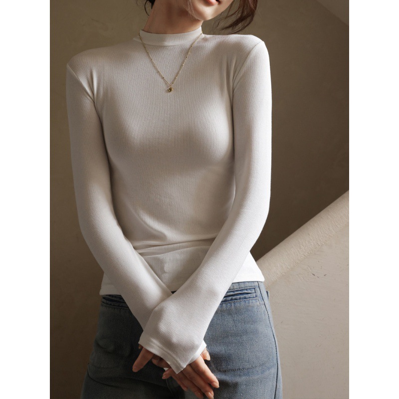 Small Collar Base T-shirt Women’s High White Thread Base Shirt Autumn Inner Slim-fit Base Shirt Slim-fit Long-sleeve Top