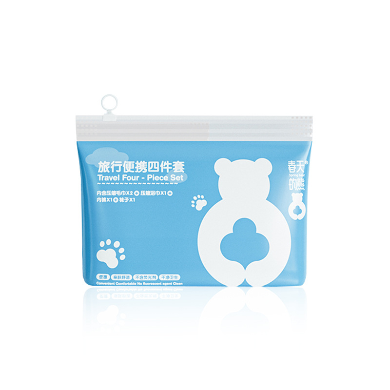 | nameOriginal | Small cotton travel suit disposable portable hotel supplies containing bath towel underwear socks four-piece set |