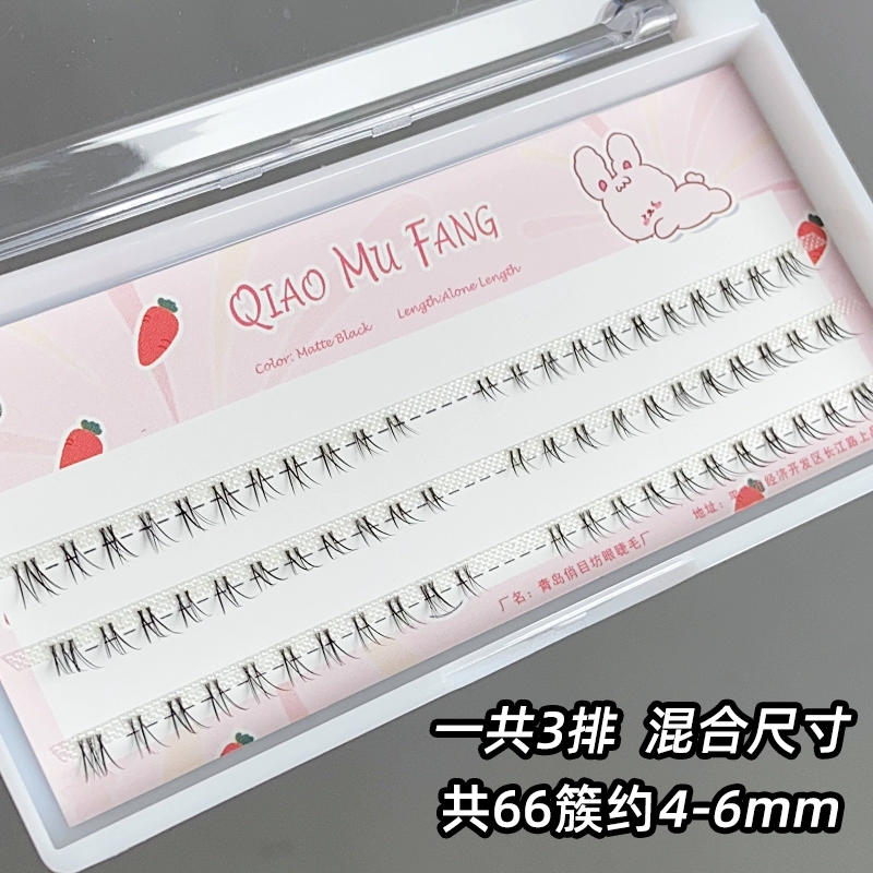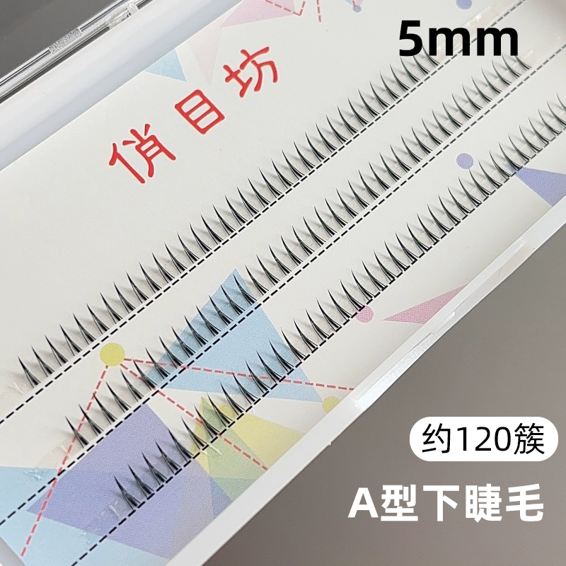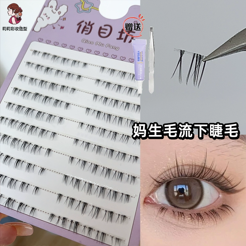 Small crescent lower eyelashes, single cluster thick false eyelashes, V-shaped segmented natural cross Thai comic eyes