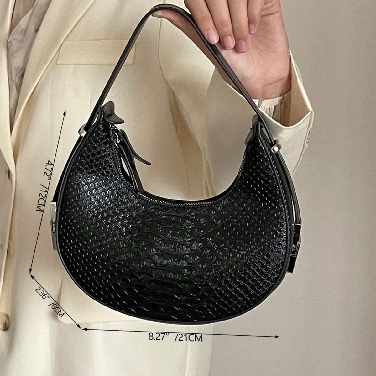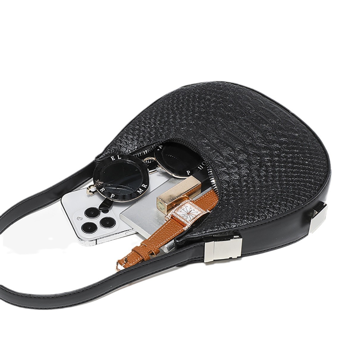 Small Crowdsourcing Women’s 2023 New Spring and Summer Crocodile Pattern Crescent Bag High-end Retro Fashion Handbag Underarm Bag