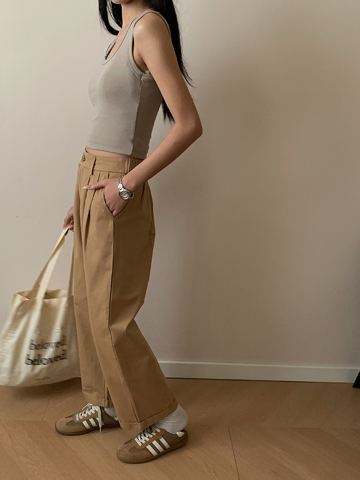 | nameOriginal | Small curling design washed casual straight pants women's loose all-match wide-leg pants for spring 24 |