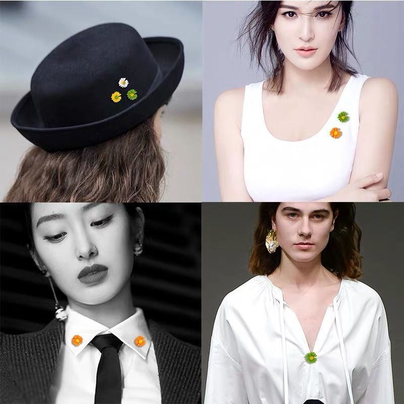Small Daisy brooch anti-light collar pin suit cheongsam pin versatile accessories niche delicate chrysanthemum pin decoration
