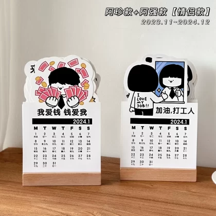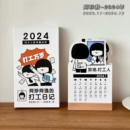 | nameOriginal | Small days never turn over 2024 Azhen Aqiang part-time work calendar punch in self-discipline wooden desktop calendar ornaments |