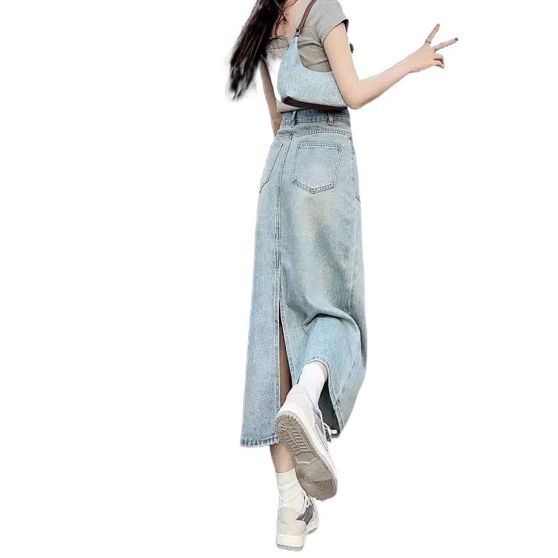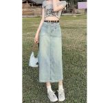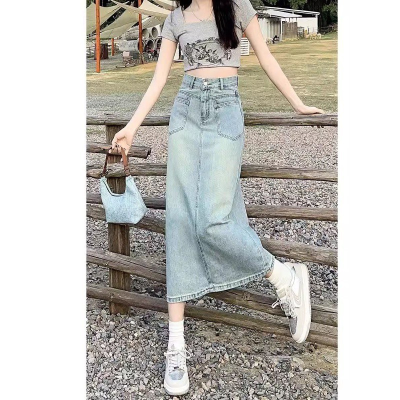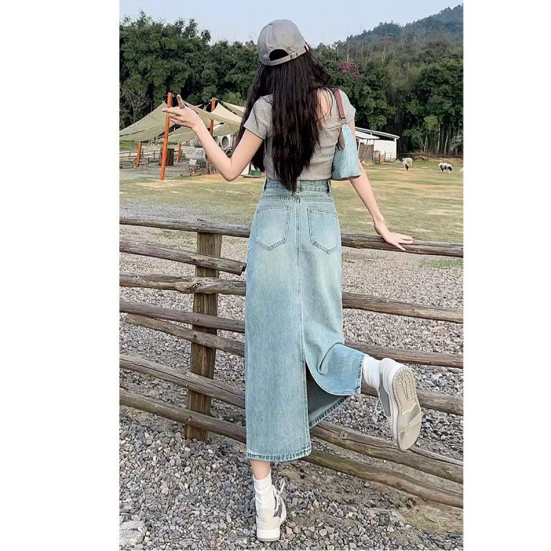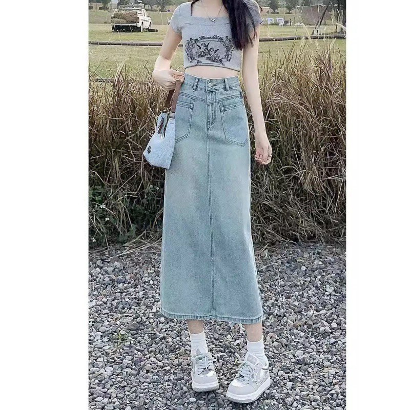 | nameOriginal | Small Denim Skirt 2024 Summer New High Waist Slimming All-match Mid-length A- line Rear Split Skirt |