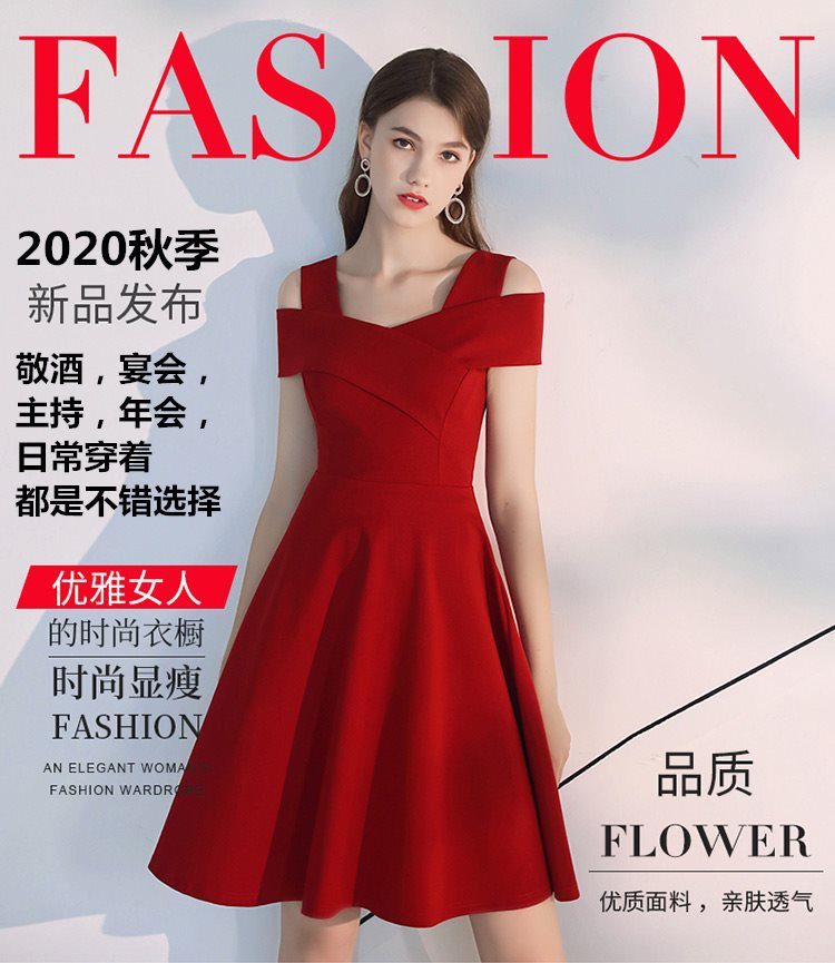 Small Dress Women’s 2023 New Autumn off-shoulder High Waist Elegant Toast Evening Dress Engagement Dress Usual Wear