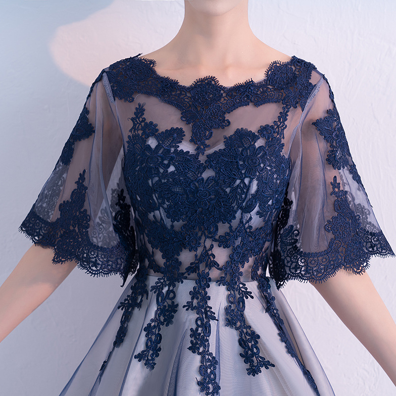 | nameOriginal | Small dress women's French style 2024 New elegant socialite evening dress navy blue mid-length banquet host dress |
