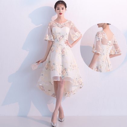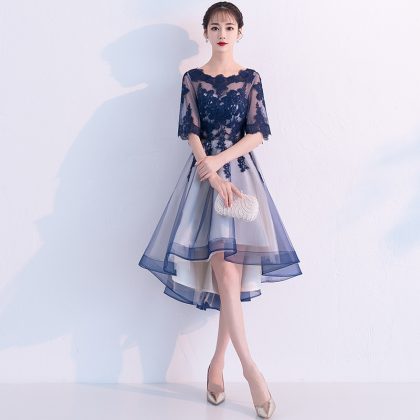 | nameOriginal | Small dress women's French style 2024 New elegant socialite evening dress navy blue mid-length banquet host dress |