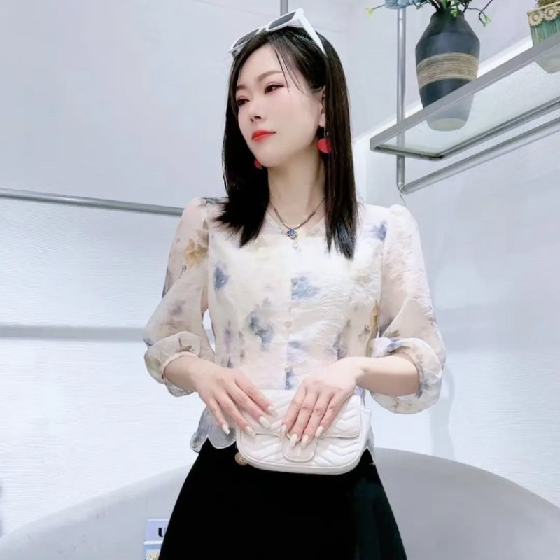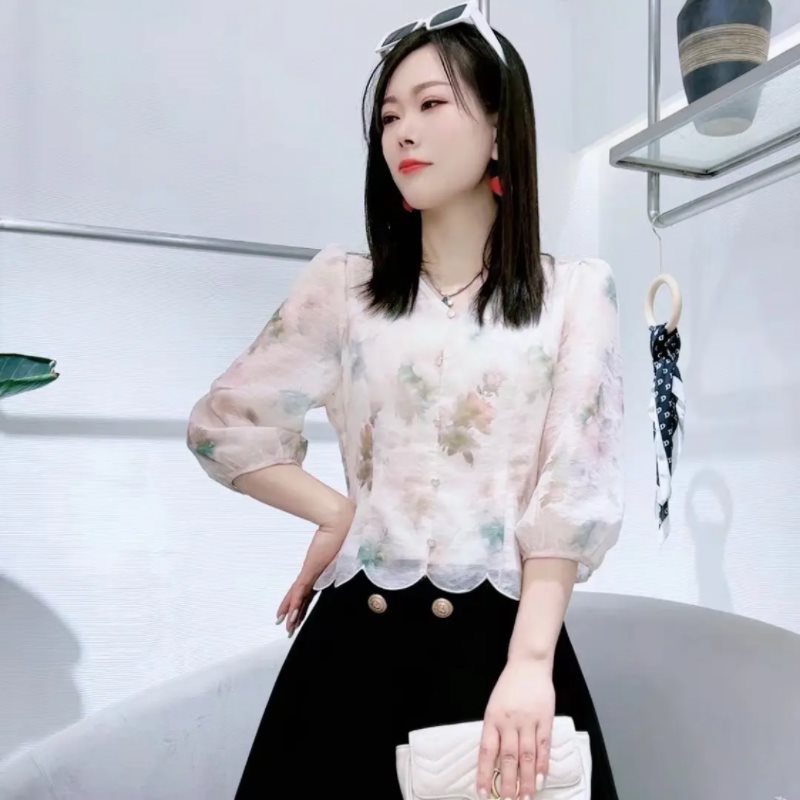 | nameOriginal | Small Floral Chiffon Shirt Women's Summer 2024 New Fashion Stylish Shirt Sweet Age-reducing Short Top |