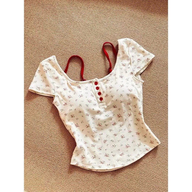 | nameOriginal | Small Floral Fake Two-piece Short-sleeved Shirt Women's Summer Slimming Design with Chest Pad Pure Desire Casual All-match Top Trendy |