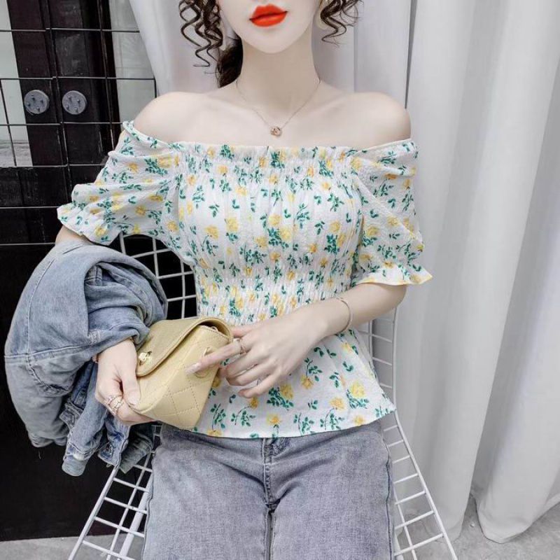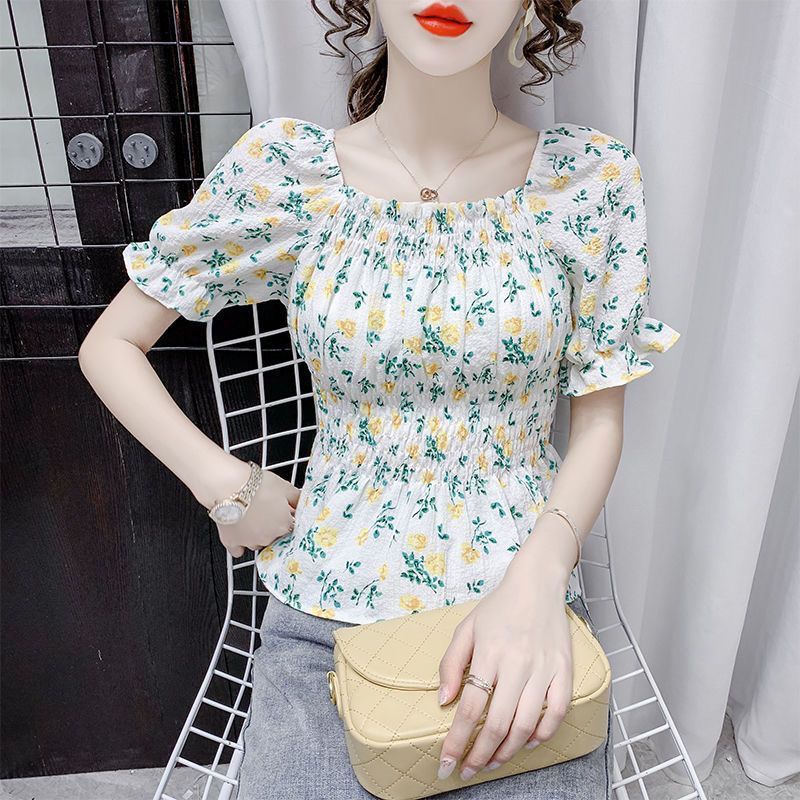 | nameOriginal | Small Floral Vintage Puff Sleeve Shirt Women's Summer New French Short Sleeve Tight Waist Covering Belly Korean Style Top |