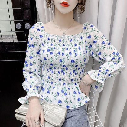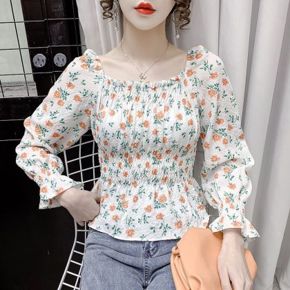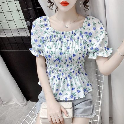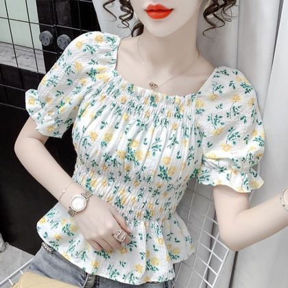 | nameOriginal | Small Floral Vintage Puff Sleeve Shirt Women's Summer New French Short Sleeve Tight Waist Covering Belly Korean Style Top |