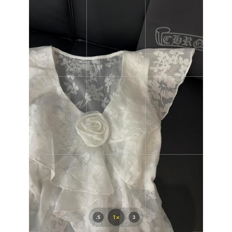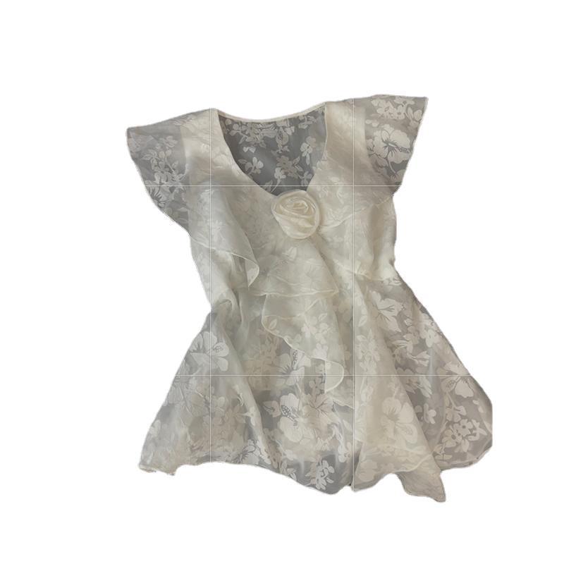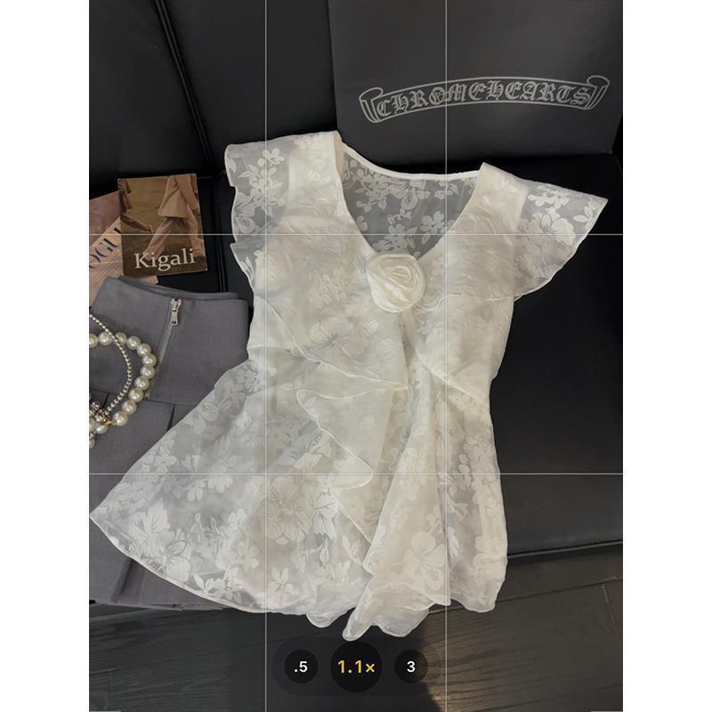 | nameOriginal | Small Flying Sleeve Ruffled Small Top Women's Three-dimensional Flower Print Design Sense Summer New Elegant Sweet and Spicy Style Shirt |