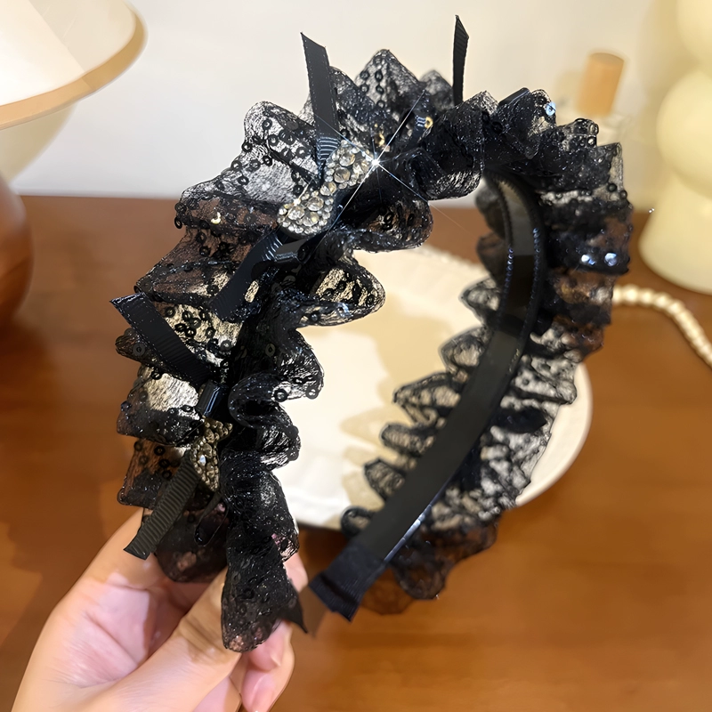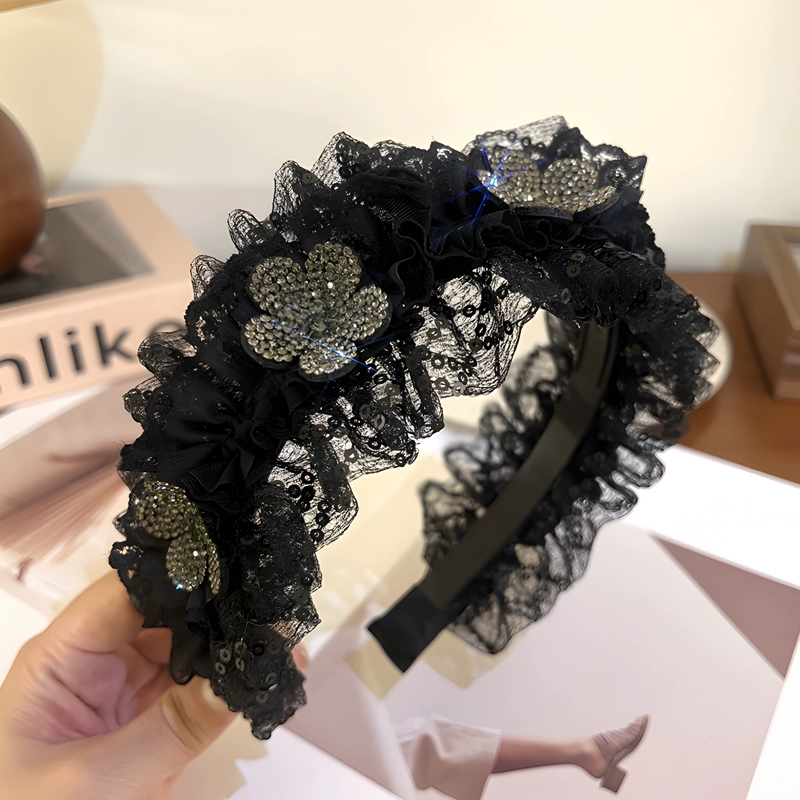 Little fragrant feng rhinestone high skull top and wide haircame lace