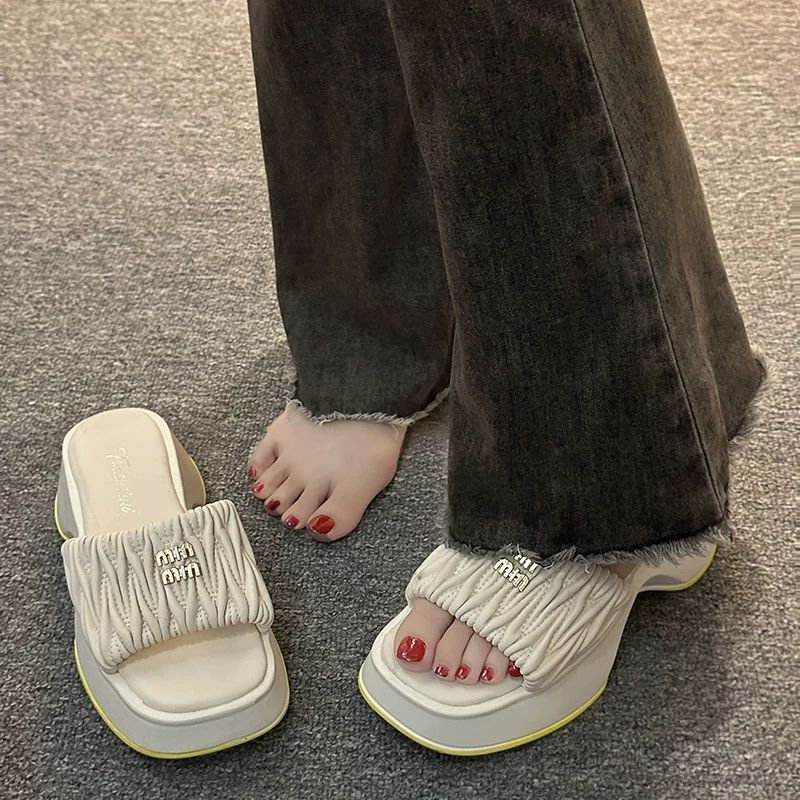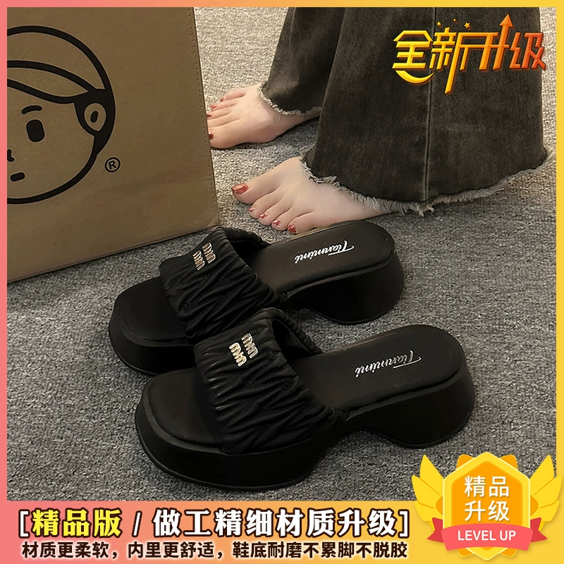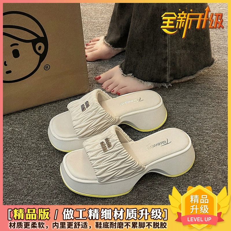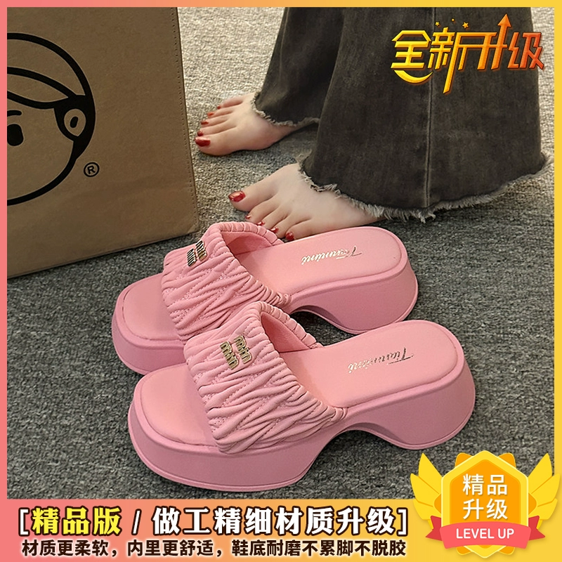| nameOriginal | Small fragrant style Barbie pink slippers for women to wear in summer 2024 new style high-end thick-soled increase super hot beach sandals |