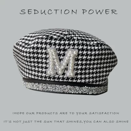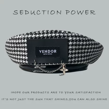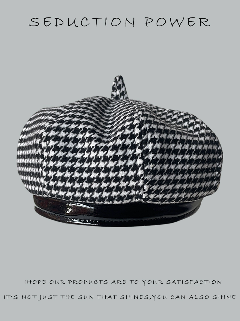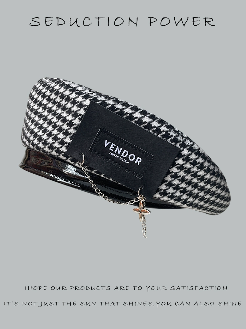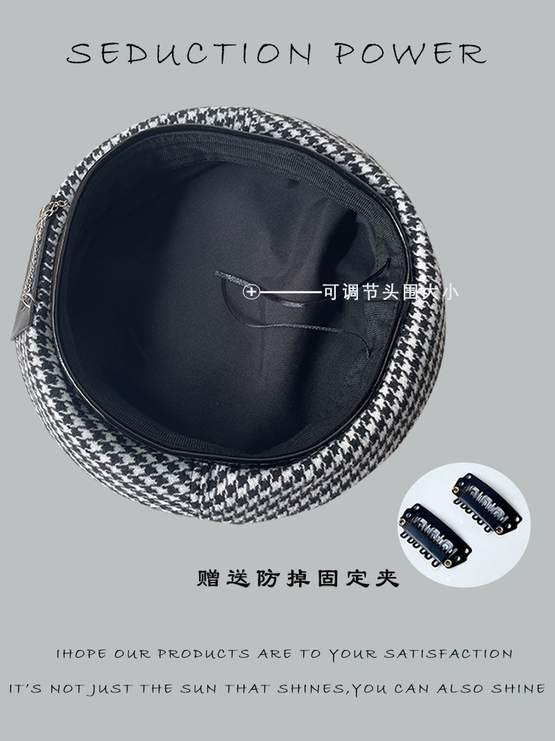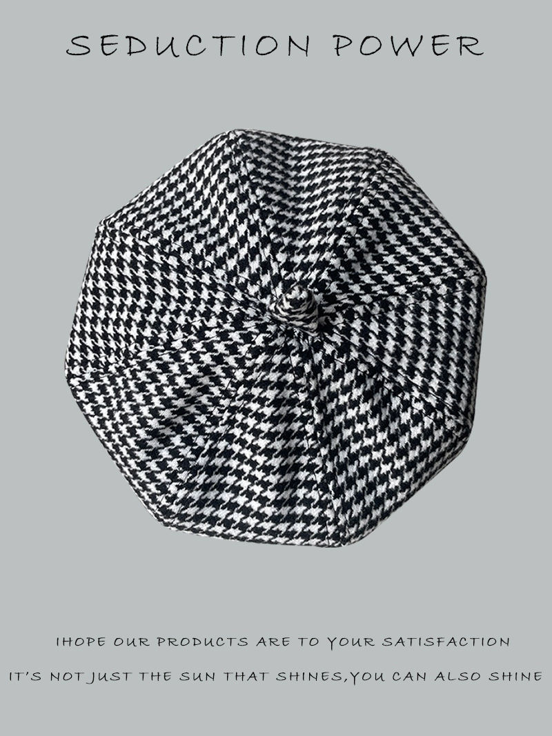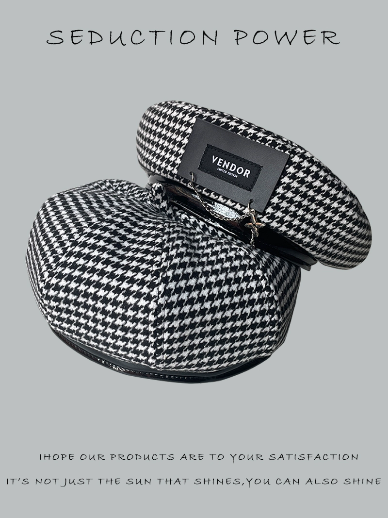 | nameOriginal | Small fragrant style beret hat for women in autumn and winter Korean style houndstooth British retro octagonal hat letter hanging chain painter hat trendy |