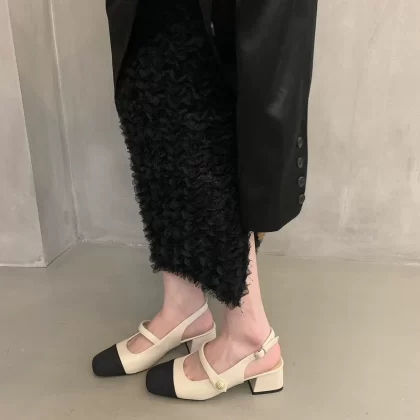 | nameOriginal | Small fragrant style medium high heel spring and summer black toe sandals |