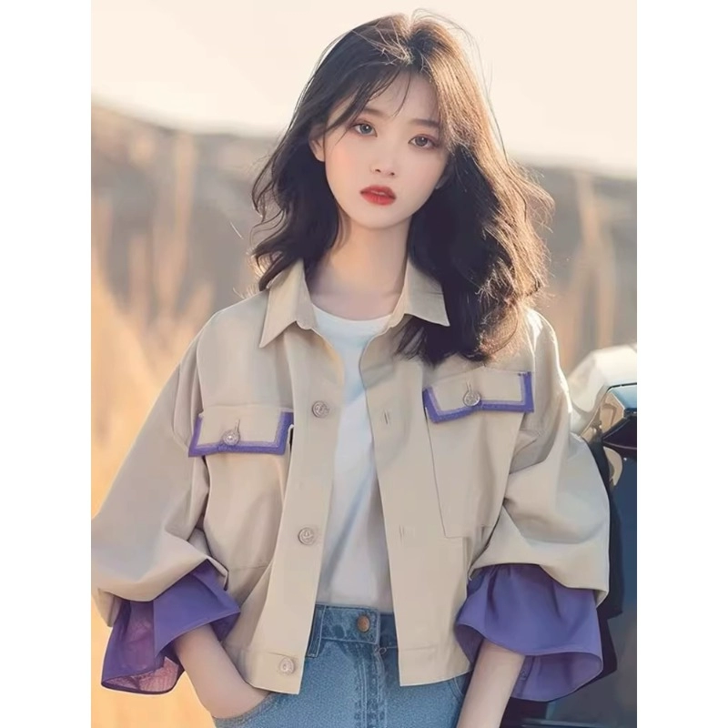 | nameOriginal | Small fragrant style stitching workwear short jacket for women in spring and autumn, unique and super good-looking Korean style lazy style cool and sassy top |