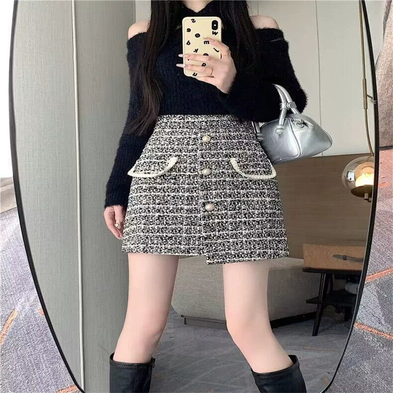 | nameOriginal | Small fragrant style tweed single-breasted retro skirt |