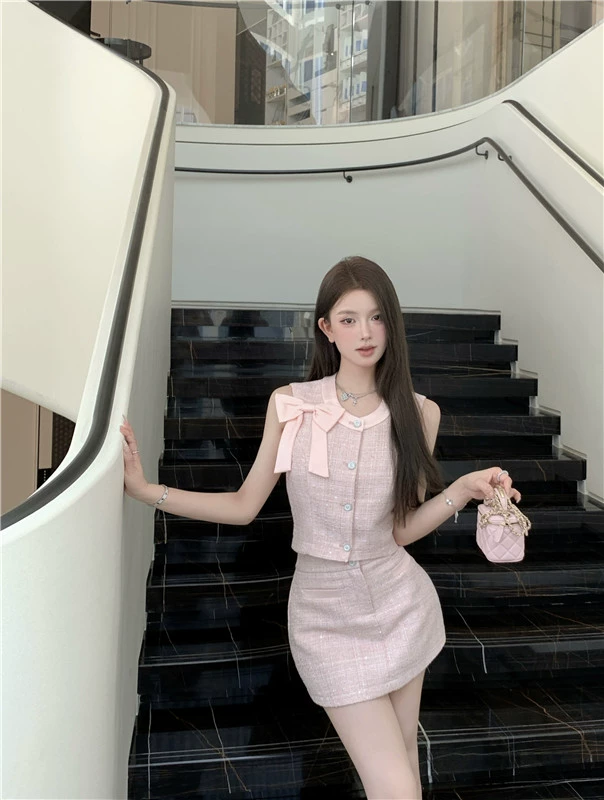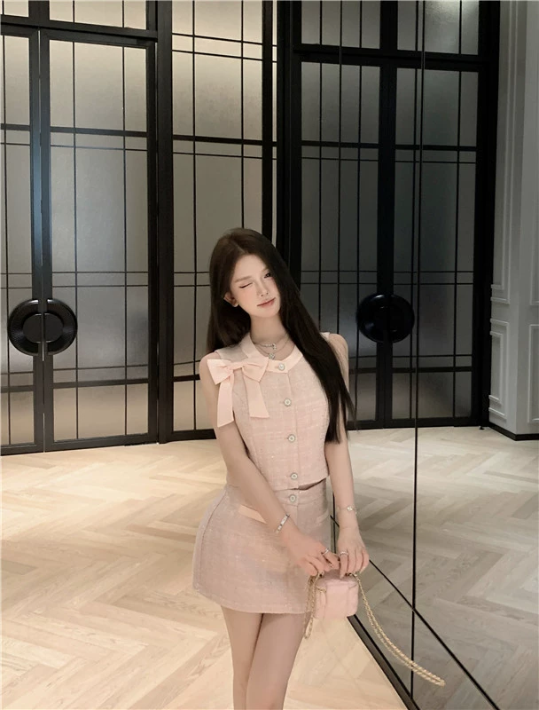 | nameOriginal | Small fragrant vest hip-hugging two-piece set with pink bow |